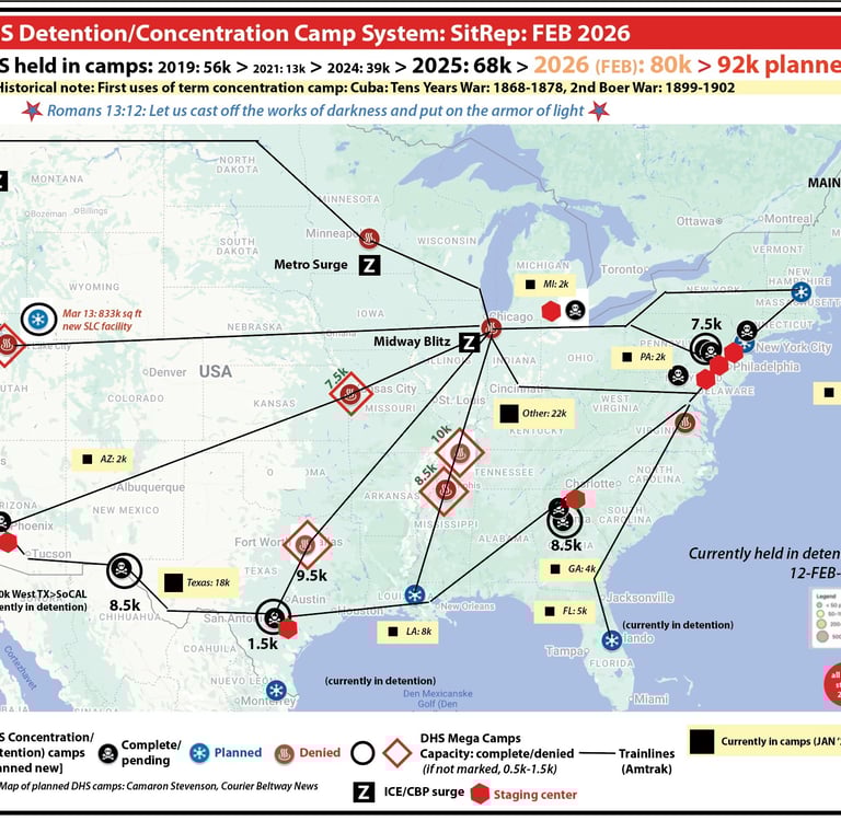 Its planned daily capacity is ~92,000 as of February 2026. All major sites and “intake/staging camps” are located near or at major rail lines.